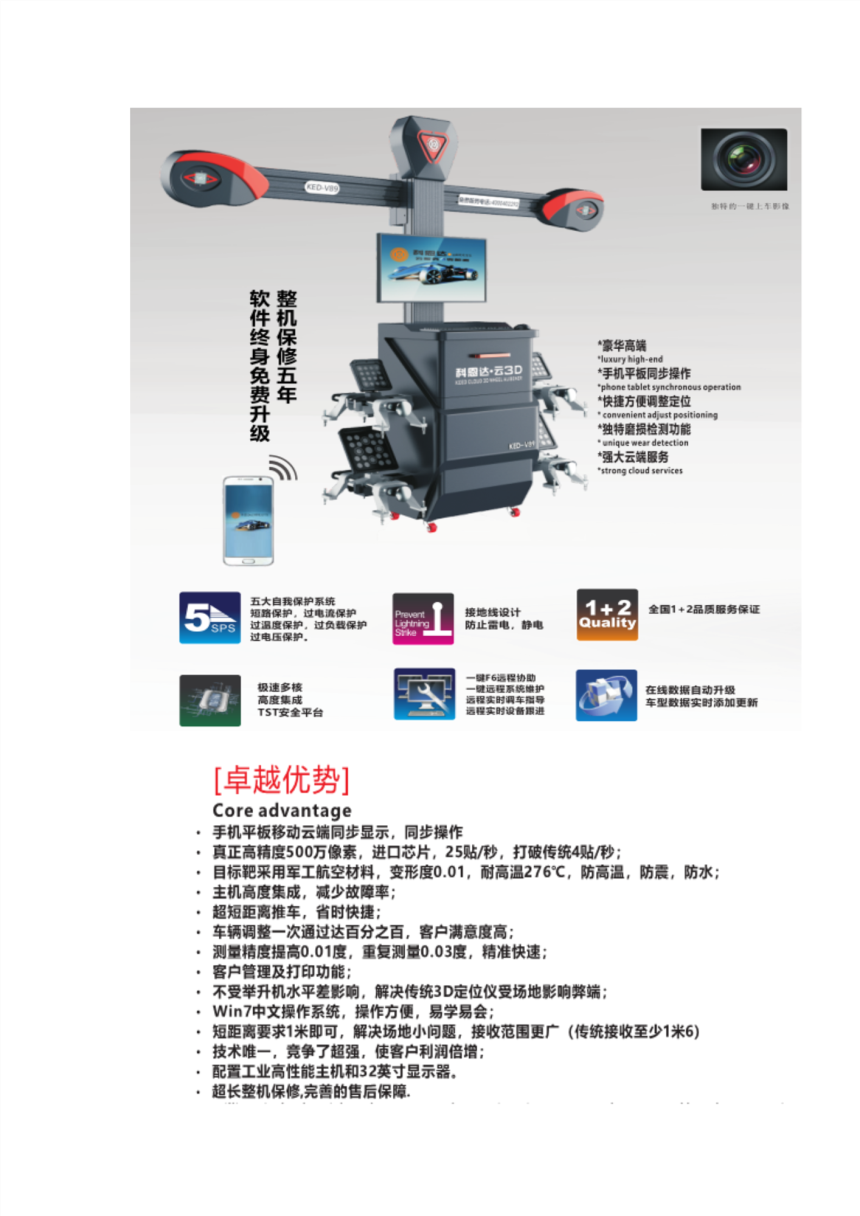 【产品名称】KED-V89科恩达云3D汽车四轮定位仪 ![]() ![]()